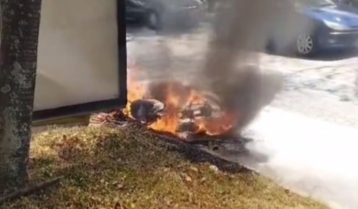 En las imágenes se puede ver la cara del sujeto que terminó arrepentido tras ir a cometer el crimen, pues su motocicleta terminó hecha cenizas.