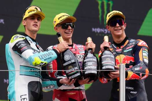 Junto a Alonso acabaron en el podio Jaume Masiá y Deniz Öncü, con David Muñoz en la cuarta plaza, por delante del neerlandés Collin Veijer, los japoneses Kaito Toba y Ayumu Sasaki y los españoles Iván Ortolá y José Antonio Rueda.