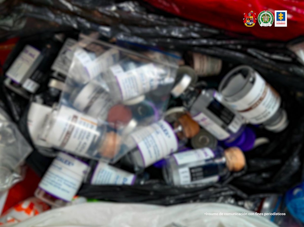 De acuerdo con los investigadores, se trata de una red criminal señalada de reciclar desechos hospitalarios, medicinas vencidas o descontinuadas, que extraían de jeringas, envases y demás presentaciones y luego las mezclaban indiscriminadamente o las rendían con agua destilada, harina y saborizantes, para darles la apariencia de un producto auténtico con cajas, registros, sellos y otras características nuevas.