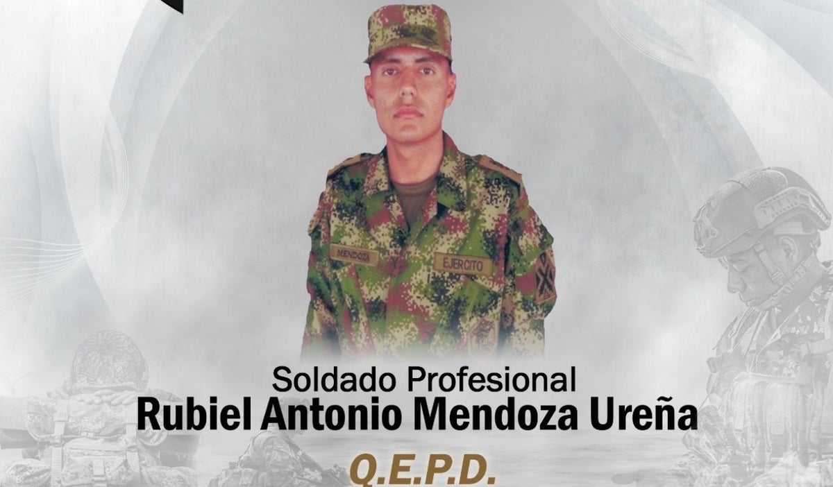 El militar asesinado fue identificado como el soldado profesional Rubiel Antonio Mendoza Ureña, natural de San José de Cúcuta, Norte de Santander, con ocho años de servicio en la institución.