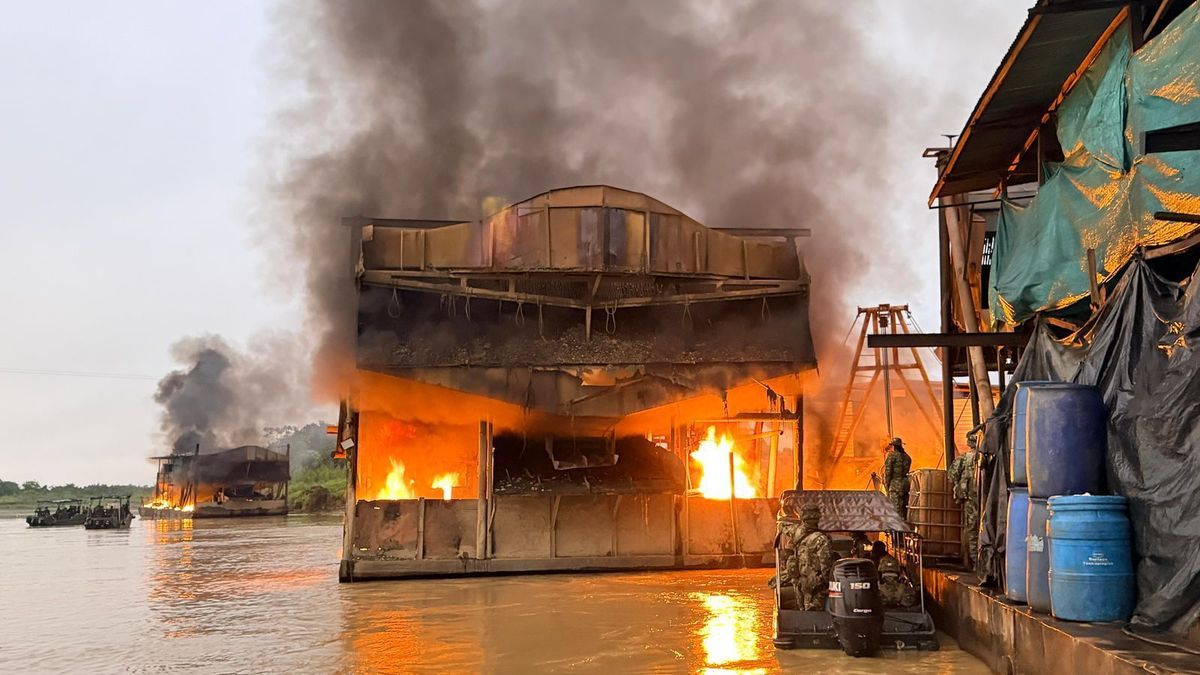 "Como resultado de las tareas ofensivas adelantadas por las tropas, se destruyó una considerable cantidad de material utilizado para esta actividad ilegal, entre el que se destacan una máquina excavadora, siete dragones tipo brasilero, diez motobombas, 20 dragas tipo buzo y 23 motores. De igual manera, se logró la captura de una persona, a quien se le incautó un revólver", dijo el brigadier general William Fernando Caicedo, comandante Décima Quinta Brigada del Ejército Nacional.
