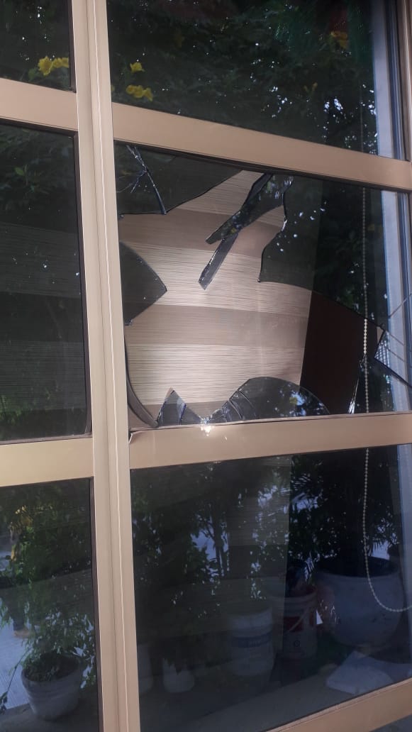 “Yo estaba acostada con mi hijo y entonces escuché un estruendo bastante grande y me levanté corriendo a revisar a mi hijo por todo su cuerpo y cuando salgo me doy cuenta que el vidrio de la ventana estaba partido y había una piedra bastante grande”, dijo Madrid.
