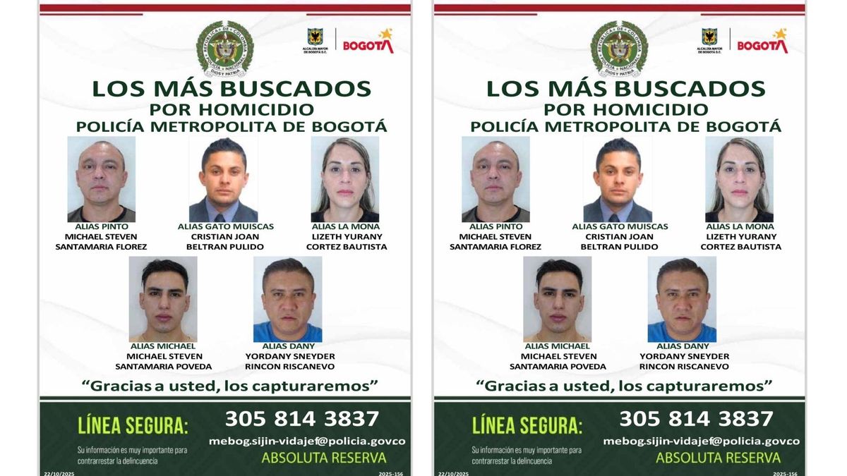 La Policía Metropolitana de Bogotá reveló en las últimas horas el 'cartel' de los cinco delincuentes más buscados por una serie de delitos que incluyen millonarios robos, homicidios y hurto calificado.