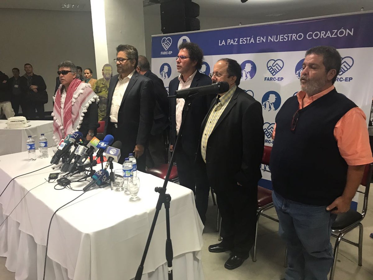 "No se viola ningún protocolo, esos actos del día de hoy se están dando en los puntos de recepción y no dentro de los campamentos. Además, los guerrilleros no están haciendo ostentación de armas porque hay pueblo en esas zonas que quieren participar en los esfuerzos para consolidar la paz", indicó Márquez.