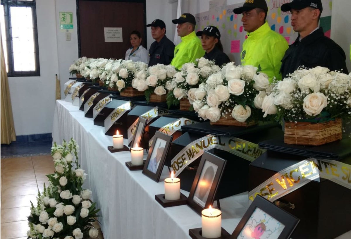 Entre los restos se encontraban los de siete personas de una misma familia. Crédito: @FiscaliaCol