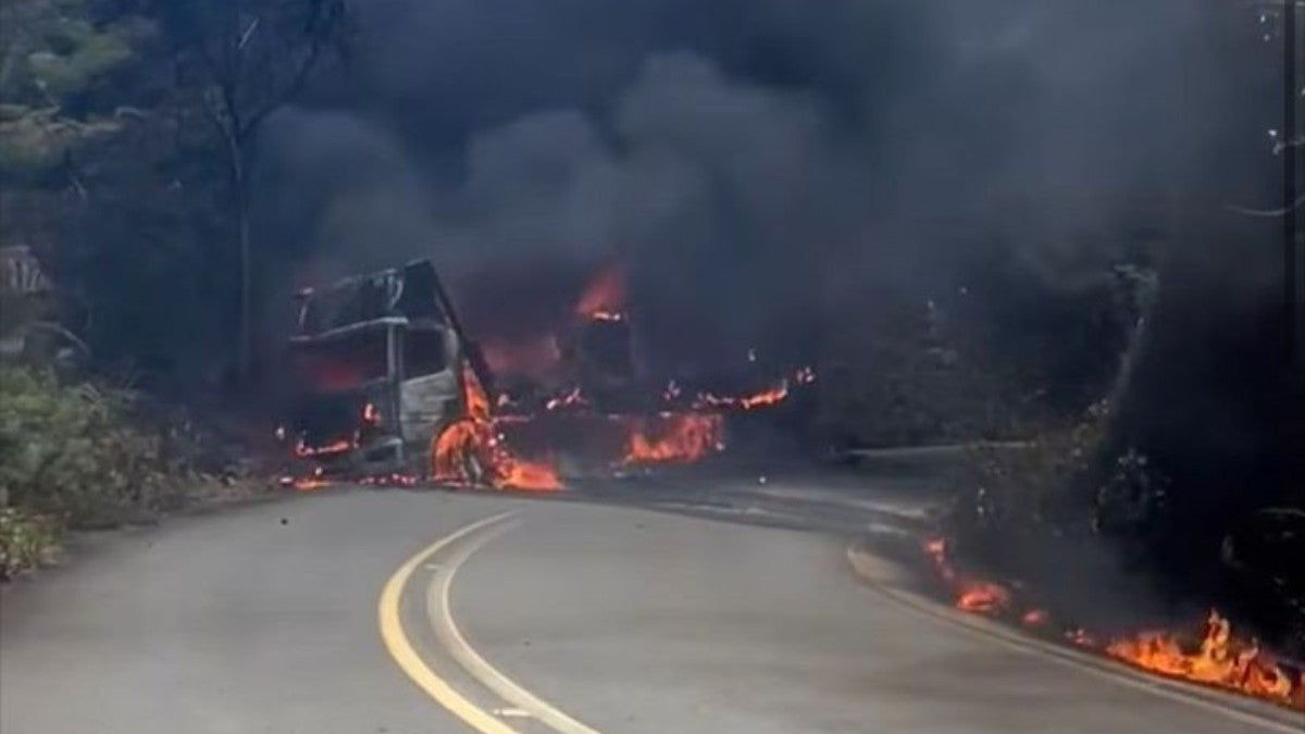 Atentado terrorista en Antioquia: las Farc prendieron fuego contra un vehículo