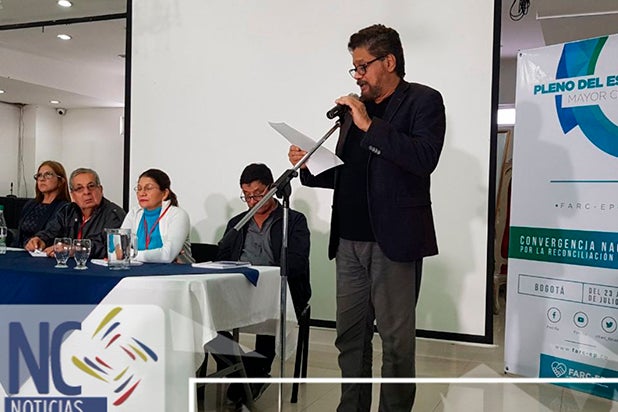 Igualmente Iván Márquez, jefe negociador de las Farc en los diálogos de paz con el Gobierno Nacional, leyó un informe sobre “el estado de la implementación de los acuerdos de paz”, suscritos en noviembre para dejar atrás 53 años de conflicto interno.