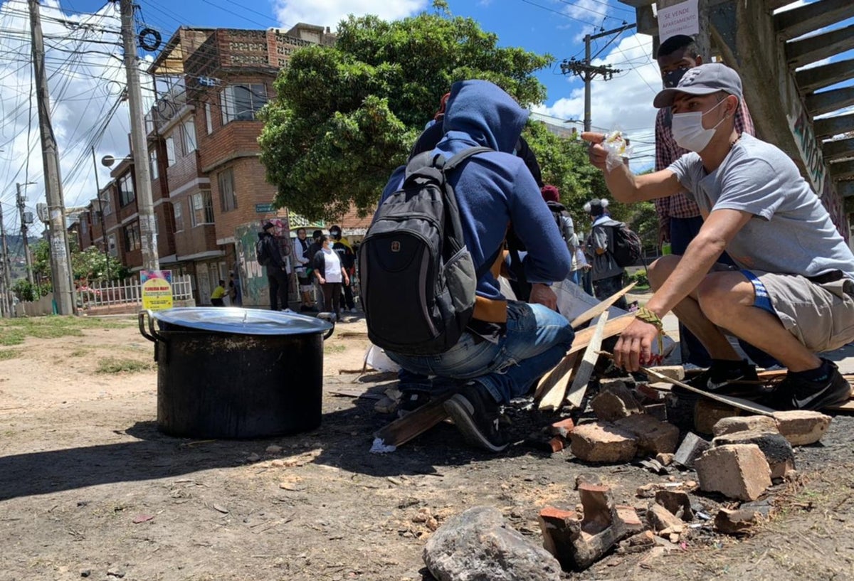 Comunidad de Usme salió a protestar con sancocho, fútbol y aguapanela