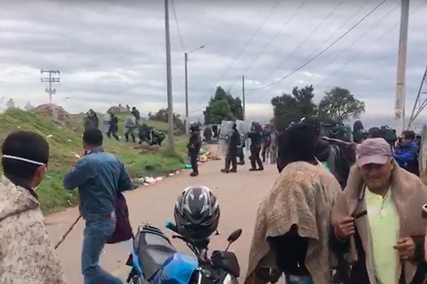 Durante la manifestación adelantada por habitantes de Mochuelo Alto, varios agentes del Esmad de la Policía, utilizaron gases lacrimógenos y bombas aturdidoras para dispersar a las personas de la protesta, quienes respondieron lanzando piedras.