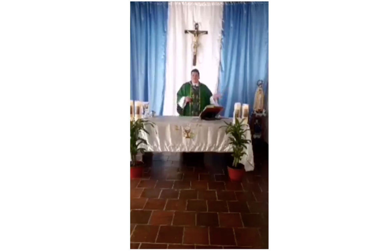 Momentos en los que el párroco de Tona (Santander), Nestor Grimaldos, se disponía a realizar una transmisión de una misa a través de Facebook fue interrumpido por varios policías del departamento de Santander.