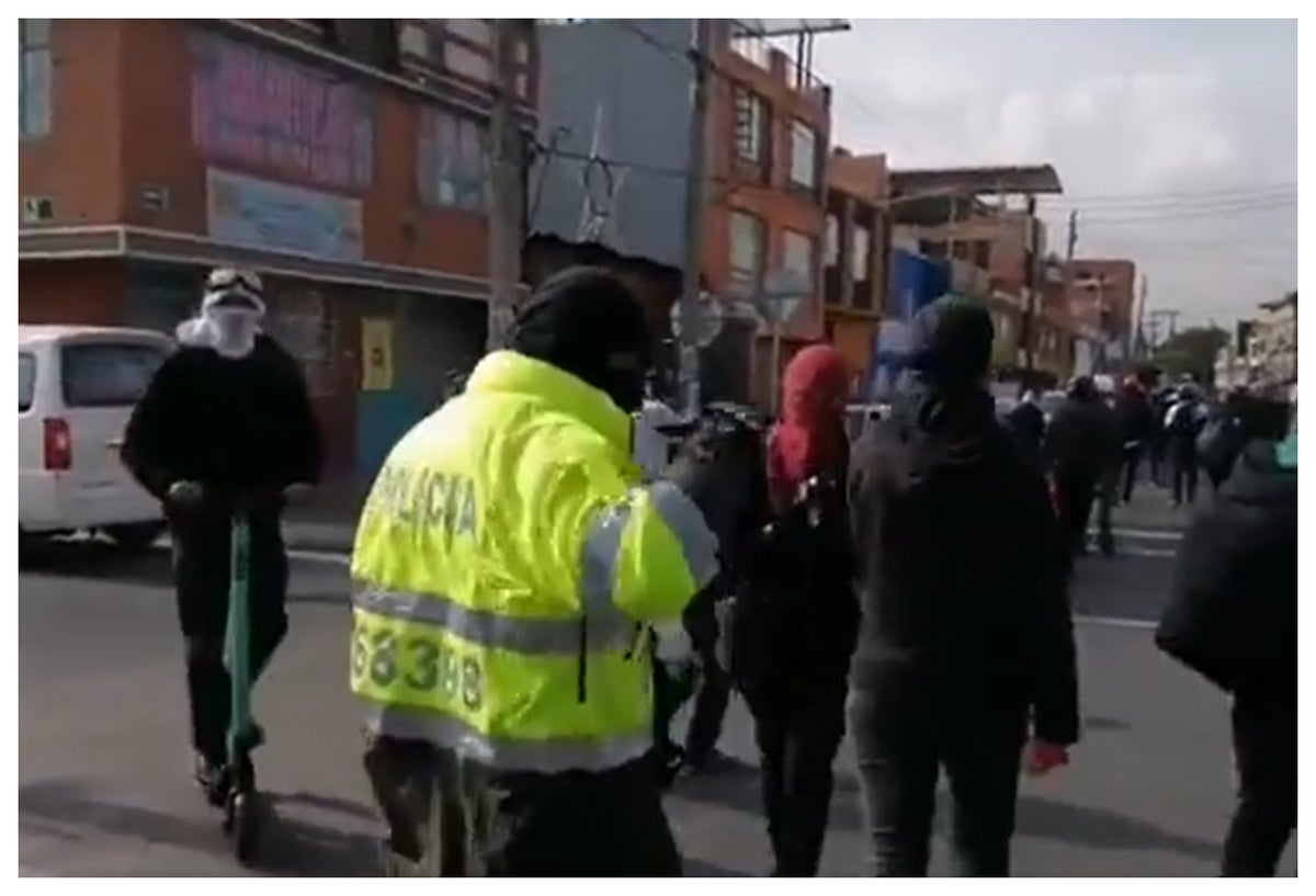 A través de su cuenta de Twitter, la Policía Metropolitana de Bogotá, se refirió a la captura de pantalla donde aparece un hombre encapuchado con una chaqueta distintiva de la institución, imagen con la cual muchos usuarios denunciaron infiltrados de las autoridades en esta nueva jornada de marchas.