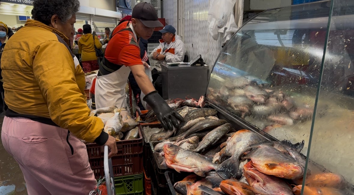En esta época del año, la plaza vive uno de sus picos más altos de actividad, especialmente por la venta de pescado. Víctor Palomino, comerciante del lugar, destacó la calidad del producto que se ofrece: