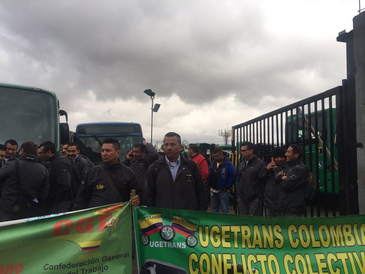 Autoridades reportan un bloqueo por parte de un sindicato del Sitp en la salida del patio La Aurora, Usme, y que pertenece al concesionario Tranzit.