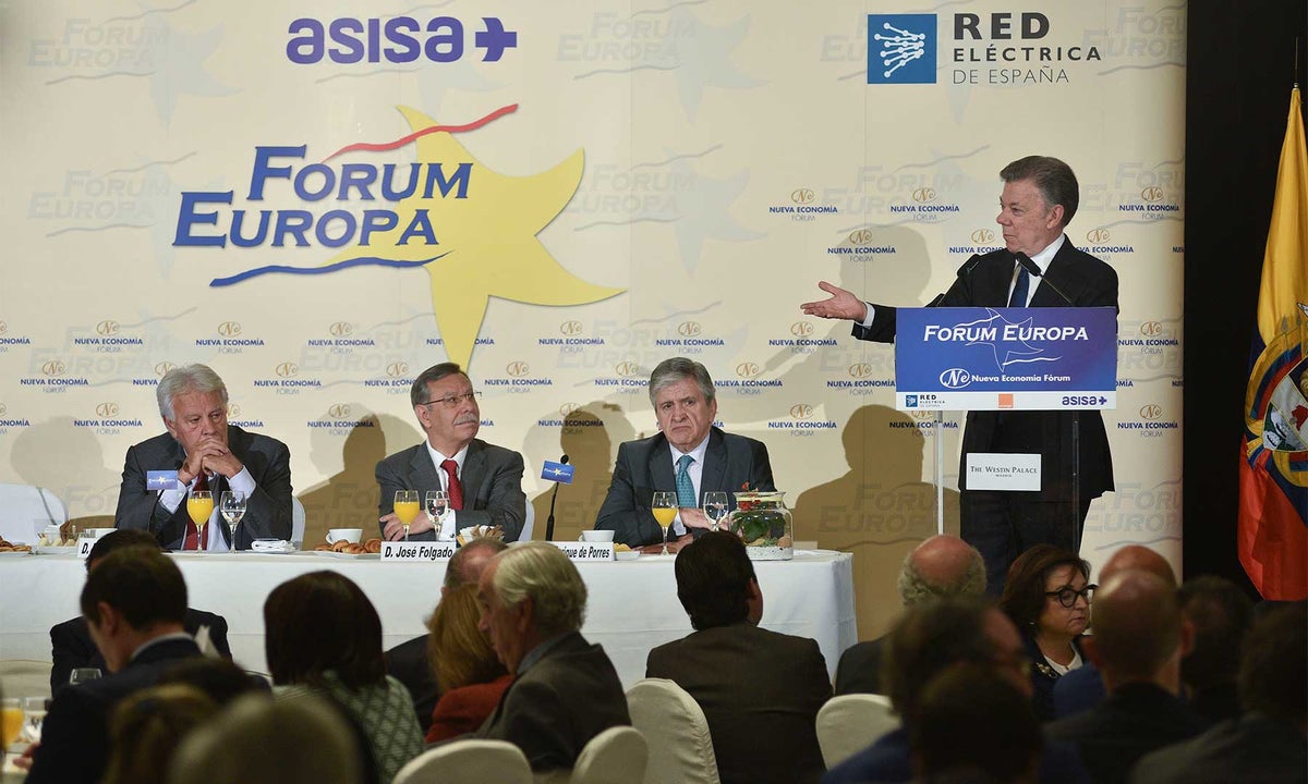 Cumpliendo en la capital española la escala final de su última gira europea como presidente colombiano, Santos defendió los acuerdos de paz con las Fuerzas Armadas Revolucionarias de Colombia (Farc) culminados a finales de 2016.