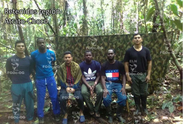 El ELN reveló dos fotografías de los secuestrados. En las imágenes se ve a los seis hombres vestidos con sudaderas y camisetas. Aparentemente se ven en buenas condiciones de salud. Están en medio de una espesa selva que sería la región del Atrato de Chocó. Esta es la segunda prueba de supervivencia después de unos audios con mensajes de los soldados y civiles a sus familiares.