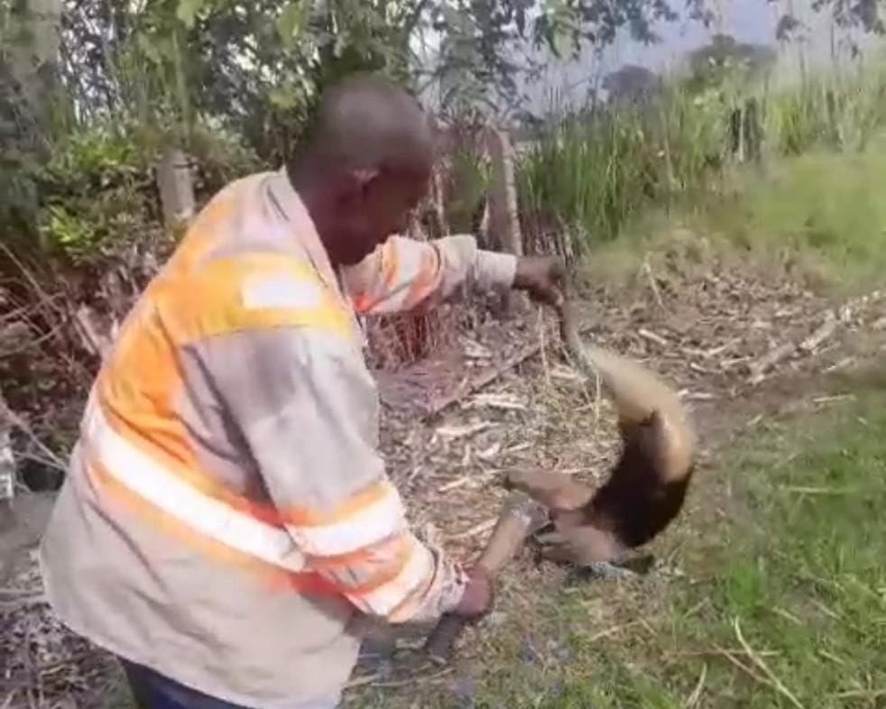 El hombre asesinó el oso hormiguero con una pala. Crédito: Captura de Video.