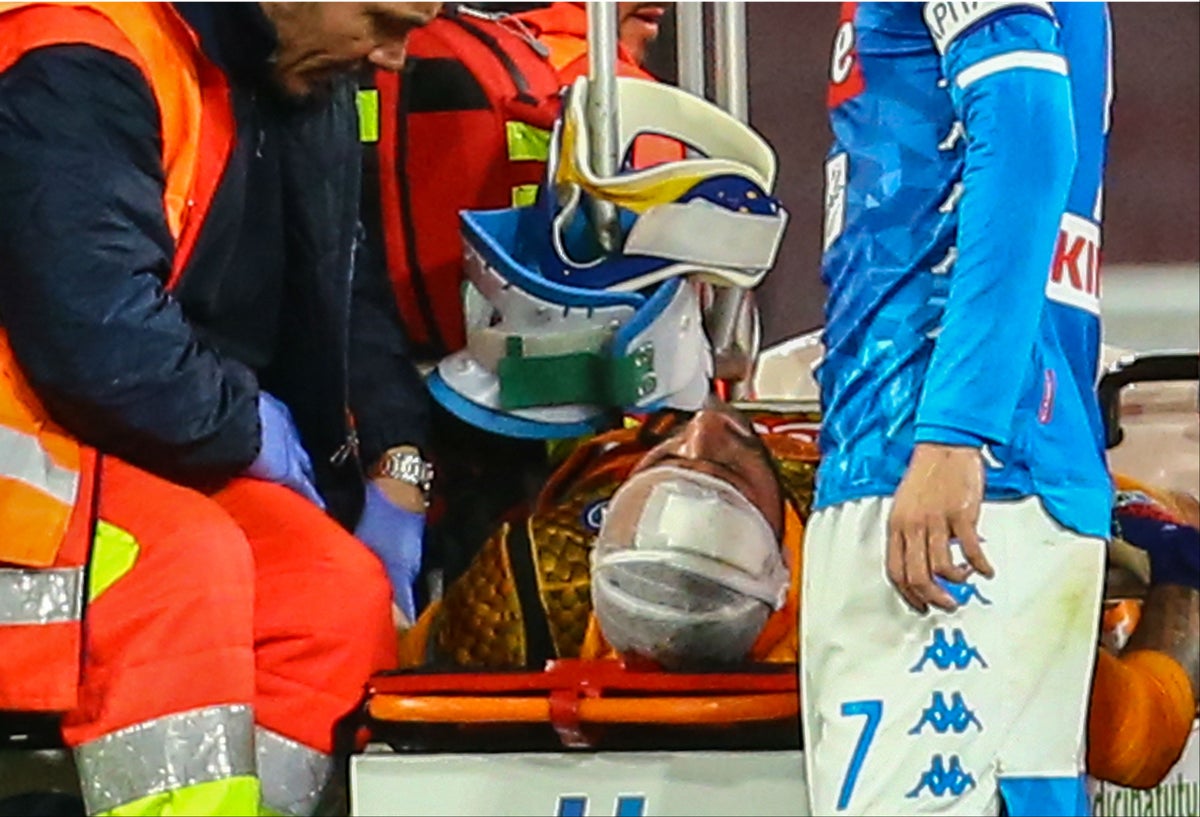 La jugada se produjo mediando la primera parte; llegó un balón a ras de piso por el área de Nápoli y el colombiano salió a cortarlo, chocando con la pierna de un delantero de Udinese y prendió las alarmas tras quedar en el suelo. Entraron los médicos del equipo y sanaron la sutura en su cabeza; el colombiano insistió en seguir jugando y así fue.