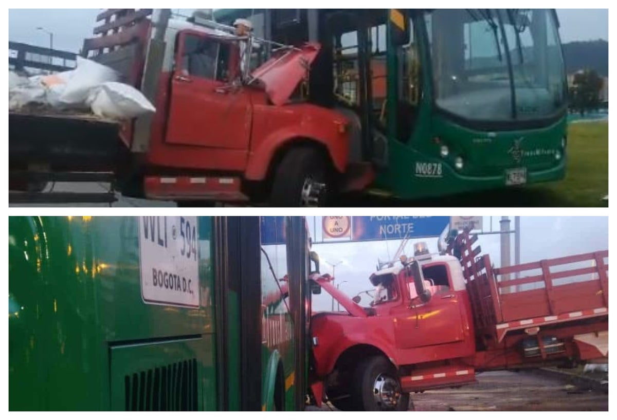Aparentemente, el conductor del camión chocó contra un poste cuando transitaba por la Calle 170, sentido Oriente-Occidente y se aprestaba a tomar la Autopista Norte, en ese momento terminó chocando de frente contra un alimentador cerca del Portal Norte.