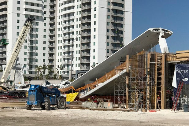 La construcción del paso peatonal, de 970 toneladas y 88 metros de largo, que conectaba la Florida International University (FIU) con la ciudad periférica de Sweetwater, en el oeste de Miami, había culminado la semana pasada e iba a ser inaugurado a principios del año próximo. Las autoridades de Florida revelaron que por lo menos cuatro personas murieron tras el derrumbe de un puente peatonal recién instalado sobre la conocida calle ocho de esta ciudad y que dejó varios heridos.