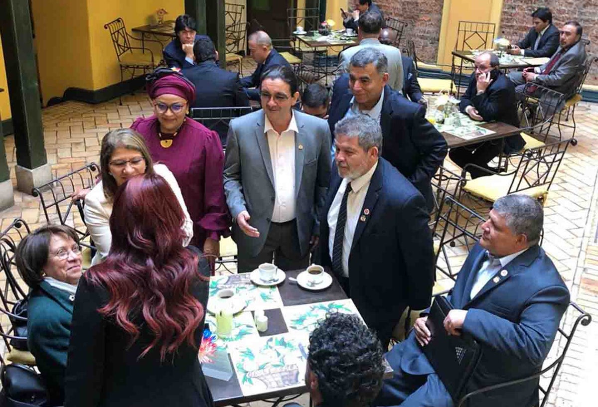 Los próximos congresistas del partido de la extinta guerrilla de las Farc están en el Hotel Opera, ubicado a escasas cuadras del Capitolio Nacional, a la espera de su posesión como congresistas.