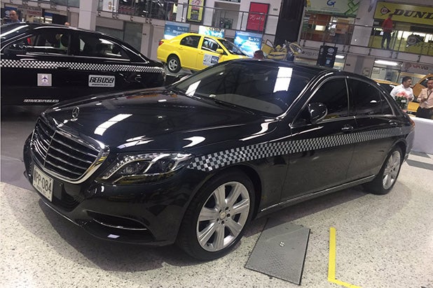Hugo Ospina, presidente de la Asociación de Taxistas, montado en un taxi de lujo