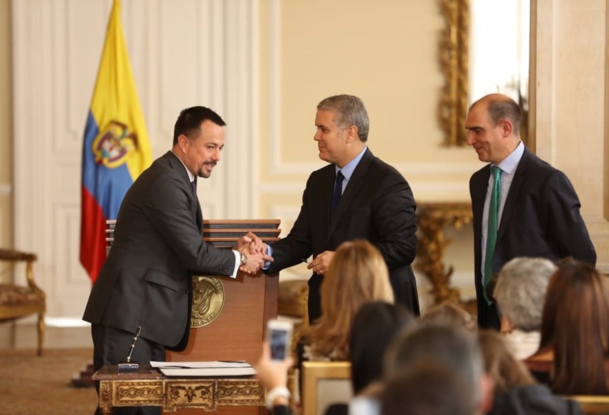 Juan Pablo Bieri cuando fue posesionado por el presidente Iván Duque como gerente de RTVC. Crédito: Colprensa
