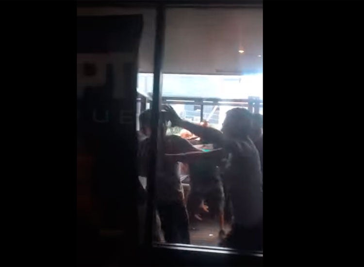 La riña, protagonizada por un grupo de al menos 20 personas en estado de ebriedad, dejó varios destrozos, algunos heridos y una un hombre con un corte en el cuello.