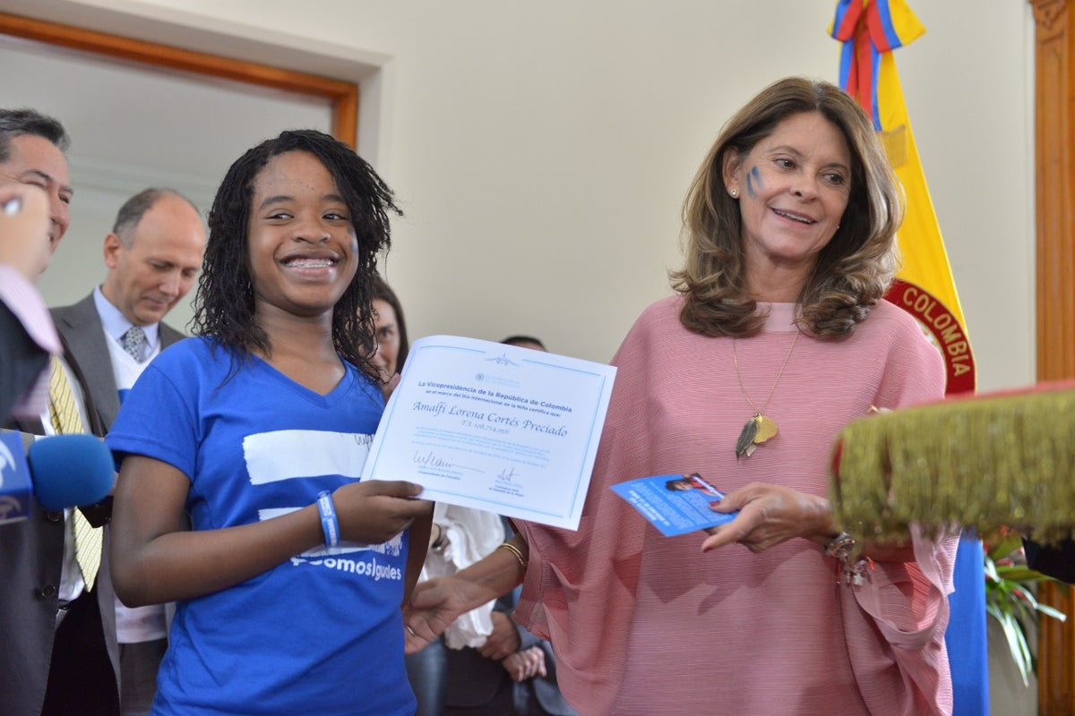 En el Día Internacional de la Niña -que se celebra cada 11 de octubre- la vicepresidenta Marta Lucía Ramírez decidió ceder su cargo a Lorena Amalfi, una menor de 13 años de edad, proveniente de la comunidad de Buenos Aires (Cauca).