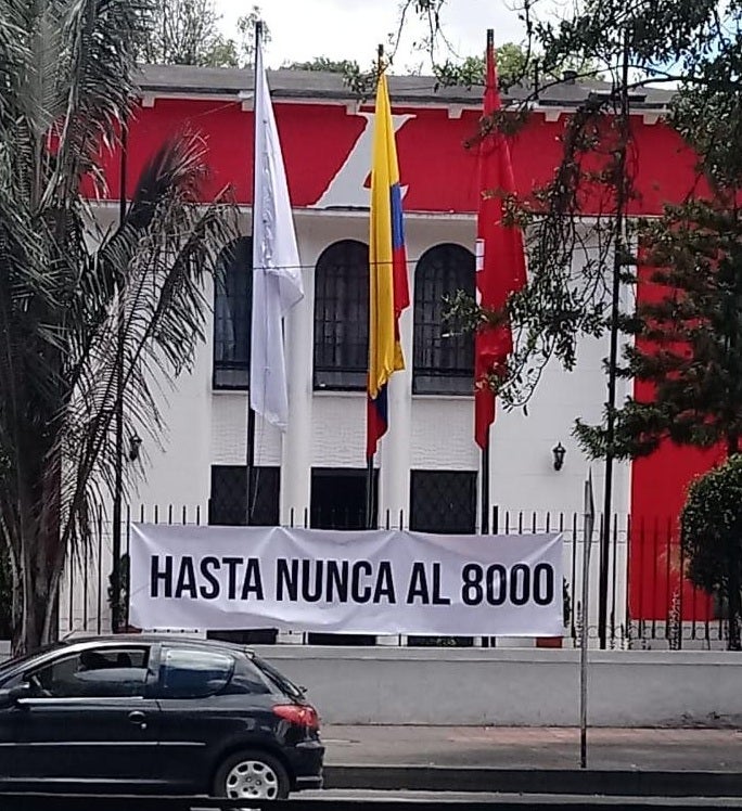 Asimismo, en la sede de la colectividad en Bogotá, ubicaron una pancarta con el siguiente mensaje: “Hasta nunca 8.000” (que hace referencia al Proceso 8.000), tras la ‘renunciatón’ promovida por exministros como Juan Fernando Cristo, Guillermo Rivera y otros dirigentes.