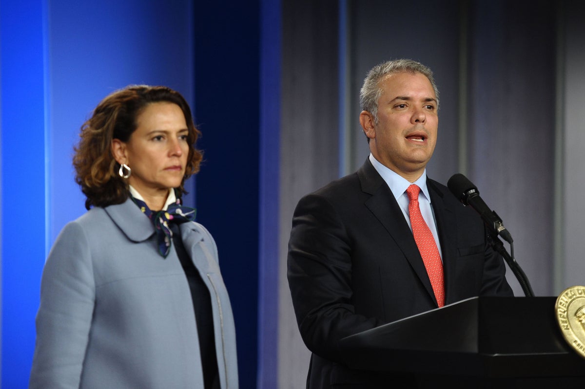 Presidente Iván Duque (der.) y ministra del Interior, Nancy Patricia Gutiérrez