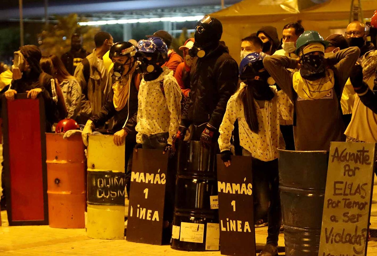 Primera Línea durante protestas en el portal de Las Américas. Crédito: Inaldo Pérez - RCN Radio