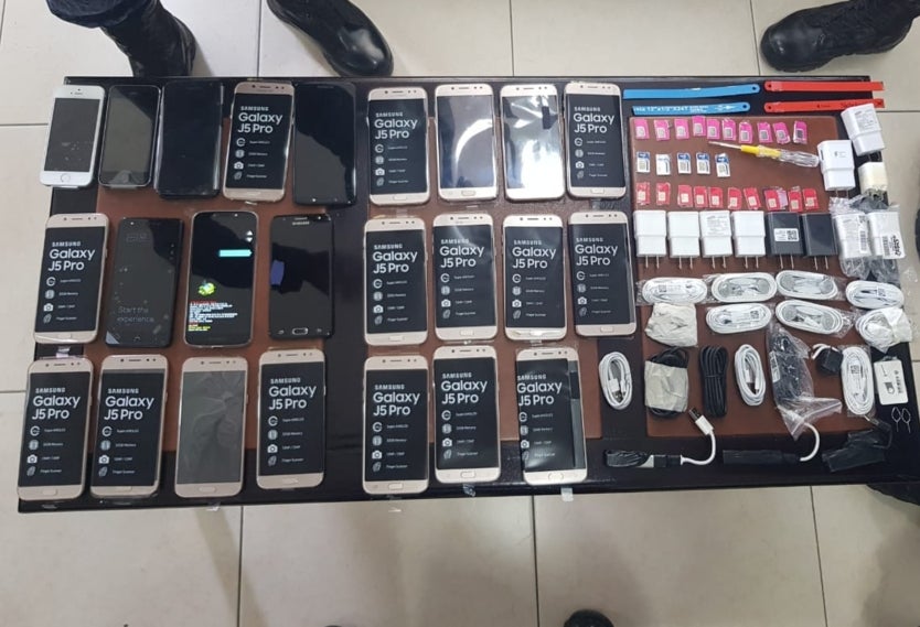 Lo que encontraron los oficiales fue un intento de contrabando: 24 celulares, 25 sim cards, un destornillador y cuatro seguetas. Todo esto oculto bajo una espesa capa de vendajes con los que la mujer esperaba pasar inadvertida. Adicional a esto, se le encontraron 32 accesorios para celulares, entre audífonos y cargadores.