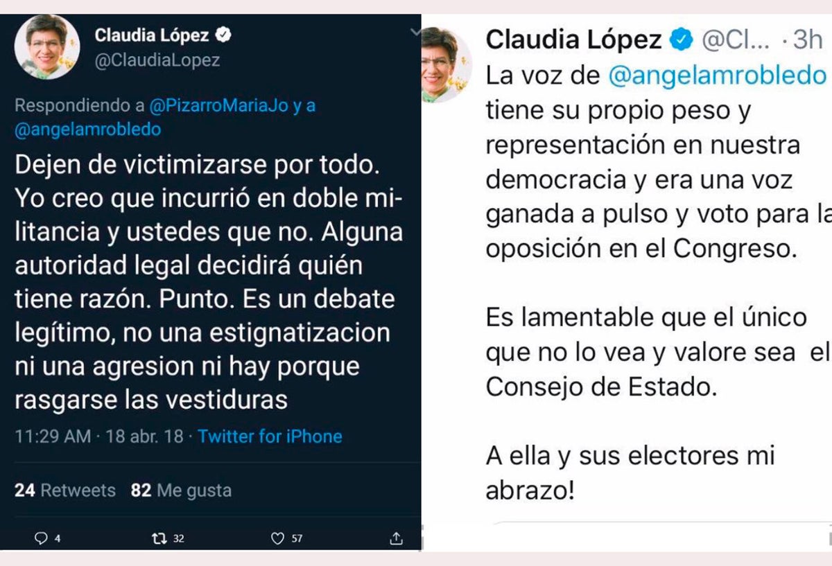 Lea también: En 2018 Claudia López opinó que Ángela Robledo había “apelado a la trampa” por doble militancia