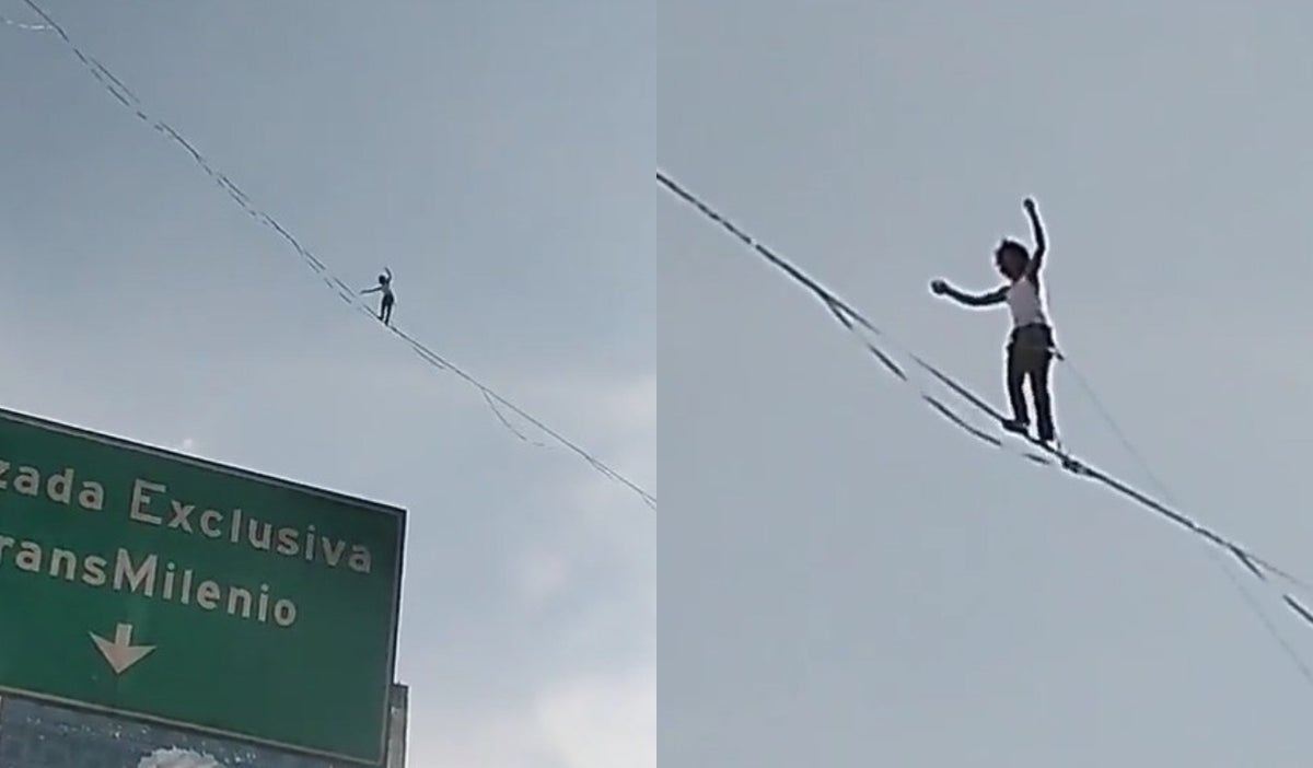 En el marco de la celebración, una mujer se atrevió a hacer equilibrio mientras atravesaba dos edificios de Bogotá por medio de una cuerda floja, generando intriga y conmoción entre cientos de habitantes que capturaron la escena en el centro de la capital.