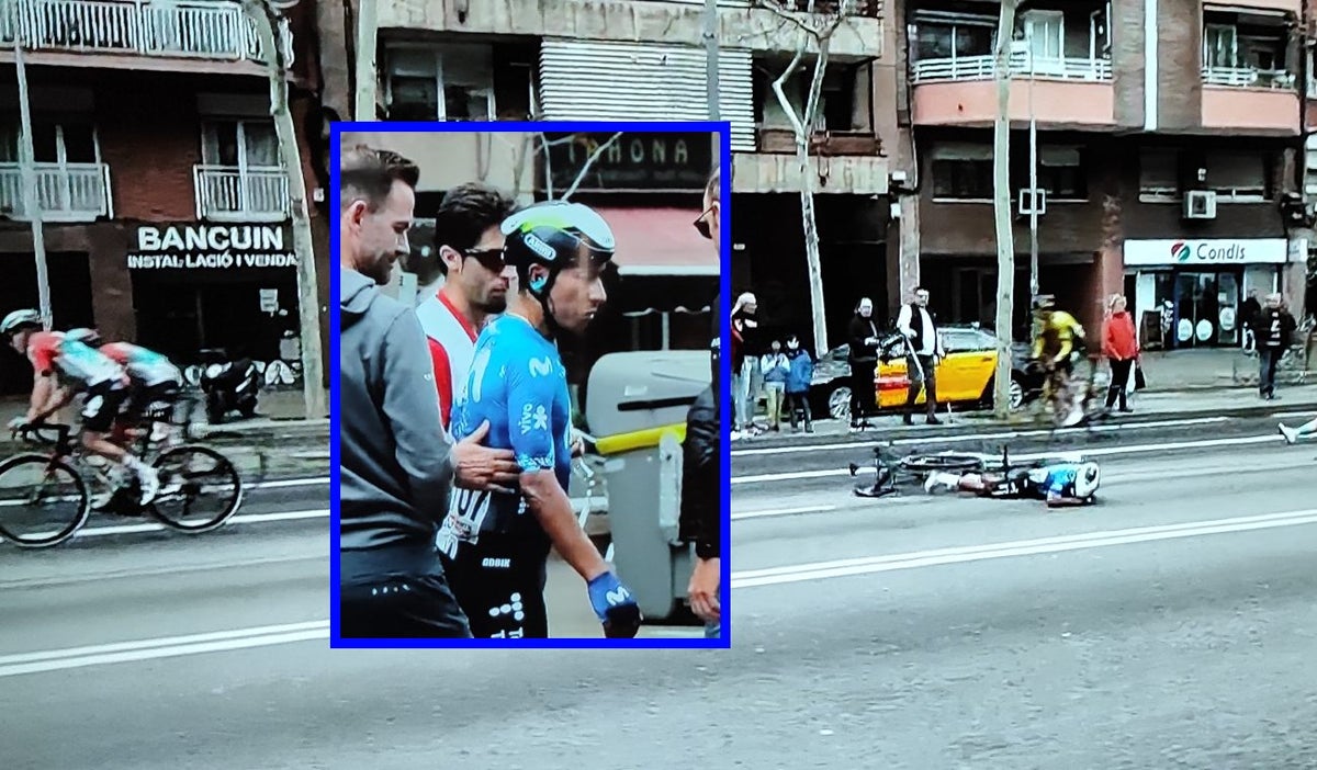 El incidente se presentó a 44 kilómetros para cruzar la línea de meta cuando el boyacense se encontraba corriendo junto al pelotón en Barcelona. Allí terminó involucrado en un choque junto al neerlandés Frank Van den Broek, del equipo DSM Firmenich, donde ambos cayeron al suelo.