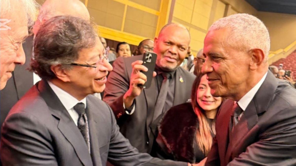 En medio del homenaje, Petro también se encontró con el expresidente de Estados Unidos Barack Obama, con quien intercambió un breve saludo mientras ambos se encontraban entre los asistentes al funeral.