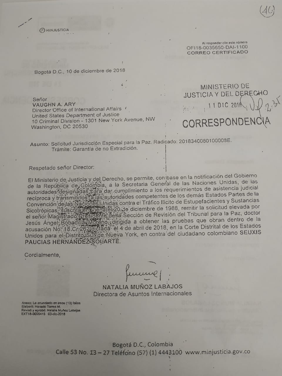 Algunos congresistas han pedido mejores explicaciones al Gobierno Nacional por la carta que nunca llegó y que la JEP había enviado a Estados Unidos solicitando las pruebas sobre el caso de Jesús Santrich.