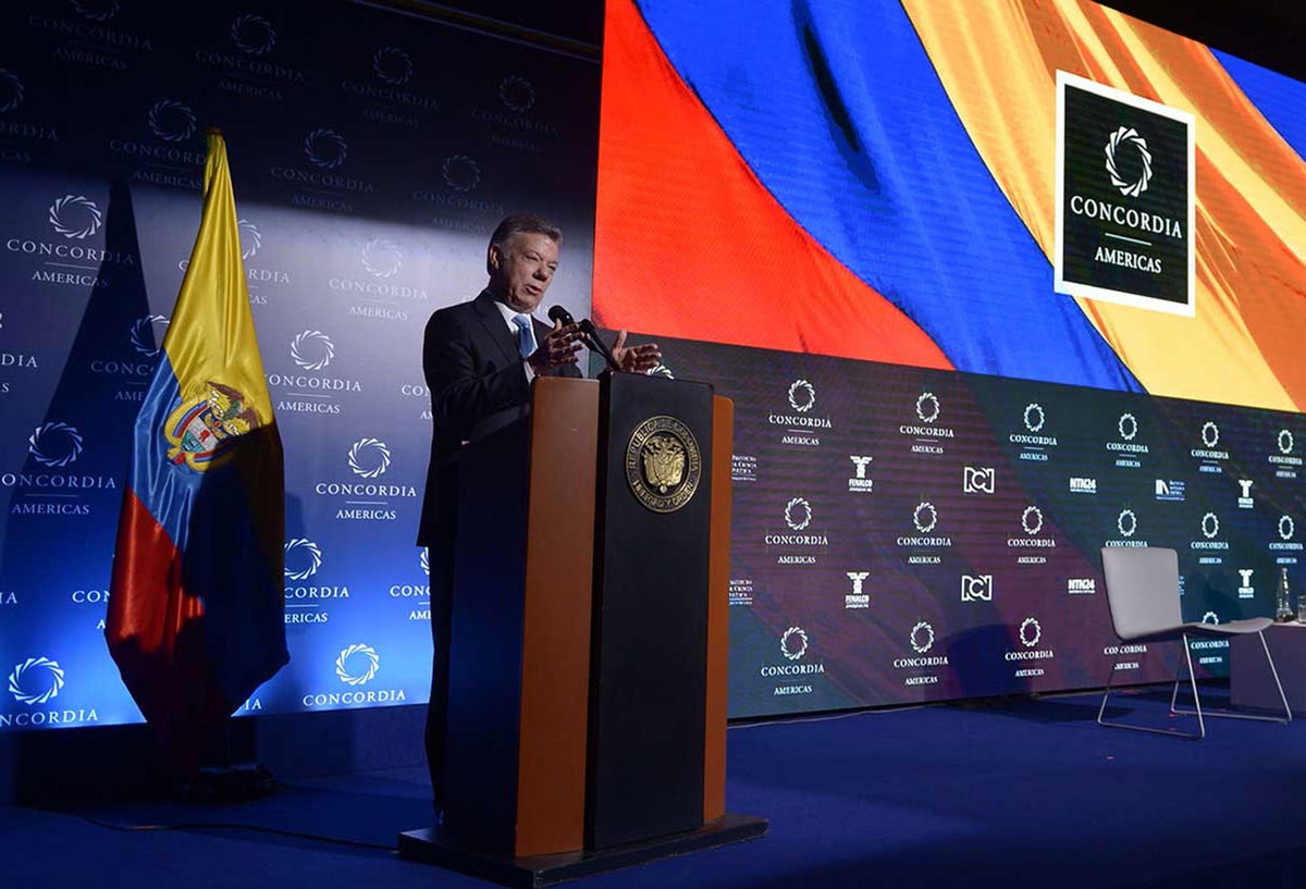 El presidente Juan Manuel Santos en la cumbre de la organización Concordia, en Bogotá