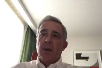 Uribe publicó un video a través de su cuenta en Twitter en el que señaló que “en Colombia y en cualquier lugar del mundo siento el deber de contradecir al Gobierno para expresar que nuestra patria ha tenido una democracia respetable y unos grupos narcoterroristas que la han enfrentado”.