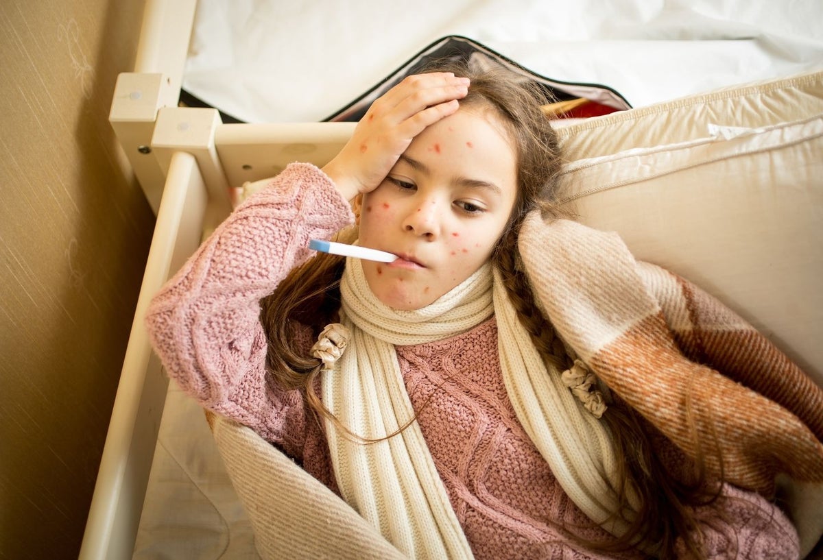 La enfermedad se manifiesta por una fiebre muy alta y luego un sarpullido. Es contagiosa cuatro días antes y cuatro días después de esta erupción.