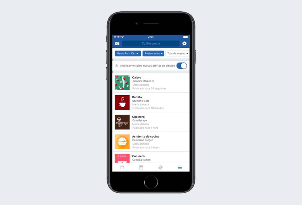 Las publicaciones de empleo pueden verse en el Feed de modo similar a otras publicaciones de Páginas, y los negocios pueden impulsar sus publicaciones para que alcancen a los candidatos adecuados. Los negocios también pueden administrar las aplicaciones y comunicarse con los candidatos, incluyendo la coordinación de entrevistas y el envío automático de recordatorios a través de Messenger.
