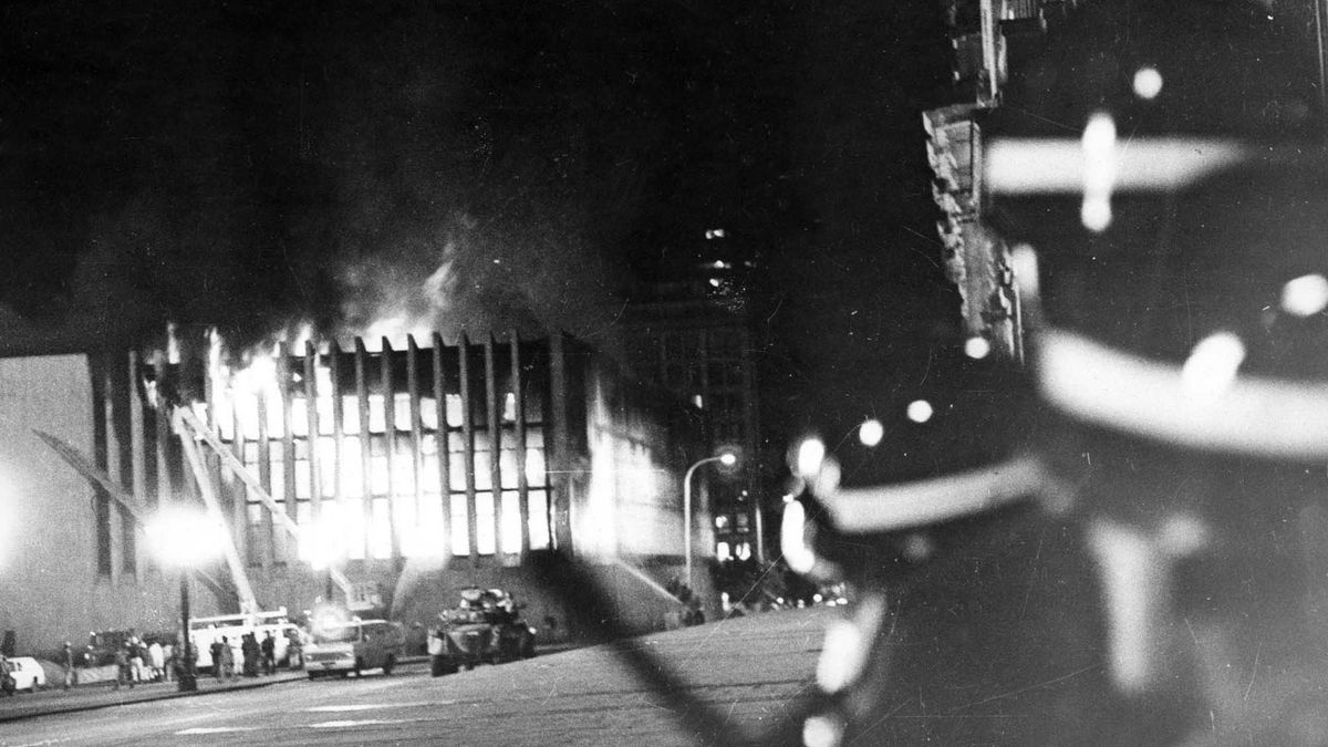 En la madrugada del 7 de noviembre (aproximadamente 2:00 a.m.), un tanque del Ejército disparó una andanada de ametralladora y rockets contra la fachada del Palacio. El estruendo hizo temer el colapso de la estructura; tras este ataque, los combates cesaron por unas horas, hasta que al amanecer, las tropas retomaron la ofensiva final.