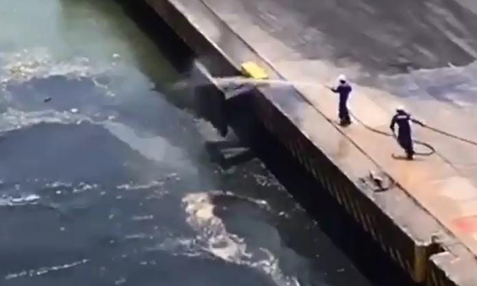 Un video encendió las alarmas entre los cartageneros. En las imágenes se observa a dos obreros del Puerto de Mamonal en Cartagena, limpiando una superficie de residuos de carbón que al parecer tiene como destino final las aguas de la bahía de la ciudad.
