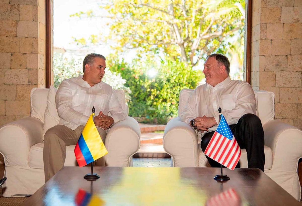 En su mensaje, que fue realizado con el propósito de darle la bienvenida a Pompeo, el mandatario de los colombianos indicó que "hace 200 años el apoyo de los padres fundadores de los Estados Unidos" fue crucial para la independencia de nuestro país.