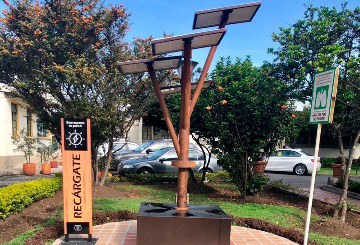 El árbol solar que recarga celulares en el Hospital Infantil de Bogotá