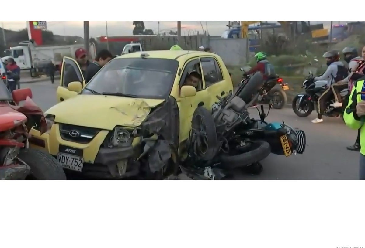 En un hecho insólito, se presentó la colisión de un taxi, una camioneta y tres motocicletas. Crédito: Canal RCN