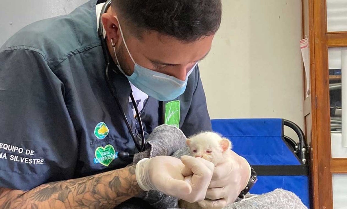 Las autoridades rescataron en el municipio de Amalfi (Antioquia) a un felino silvestre albino. Se trata así del primer hallazgo de un animal de estas características en Colombia.