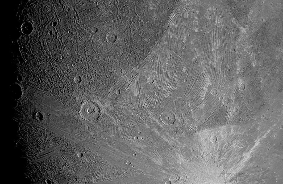 La agencia espacial estadounidense NASA divulgó este martes las dos primeras imágenes del sobrevuelo de la nave espacial Juno a Ganímedes, la luna gigante de Júpiter, con detalles de cráteres y terrenos claros y oscuros.