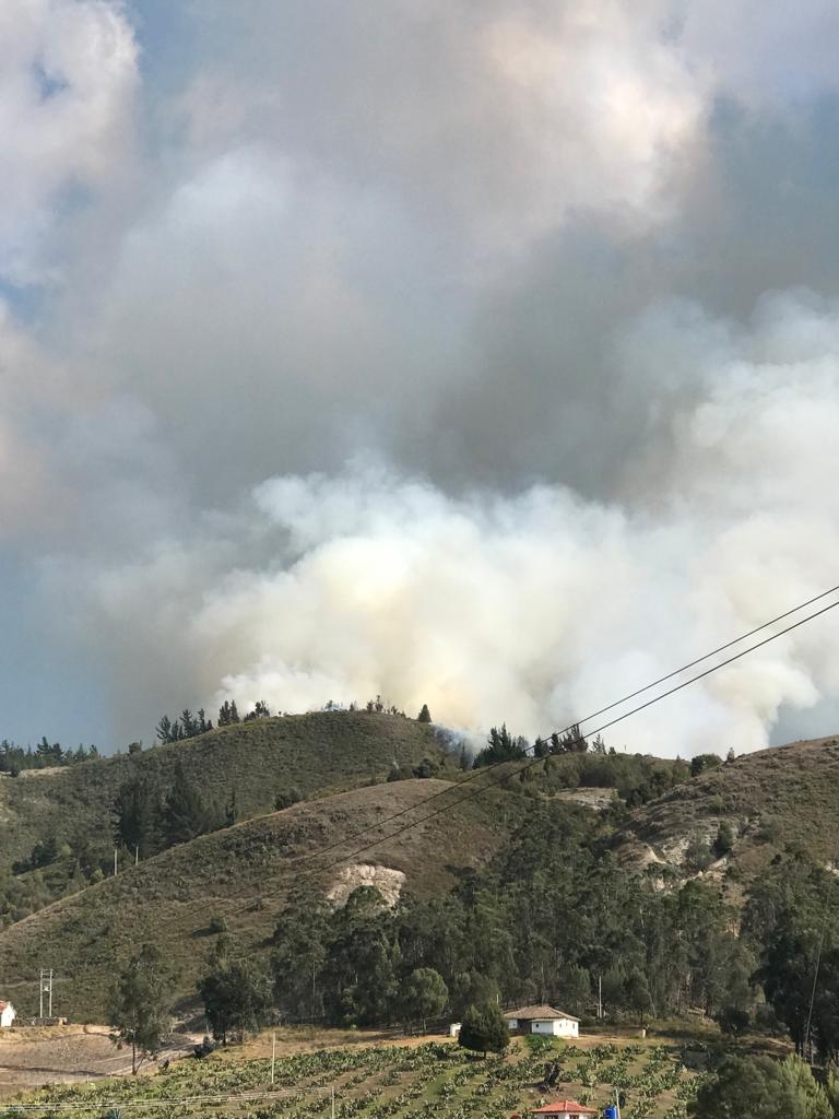 Un grave incendio forestal se registra a esta hora de la tarde en la vereda Chipacata, zona rural del municipio de Cucaita, en Boyacá.