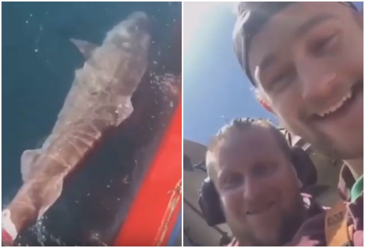 En las imágenes publicadas, se puede observar el momento en el que regresan el animal al agua, y el tiburón, con dificultad, se aleja de la embarcación.